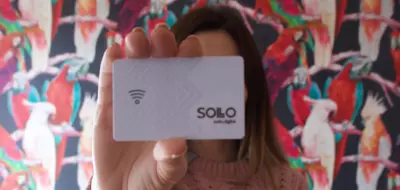 O cartão Sollo é feito de PVC, similar a um cartão de crédito, por isso, ele é resistente a quedas, água, poeira… Seu Sollo está com você sempre.